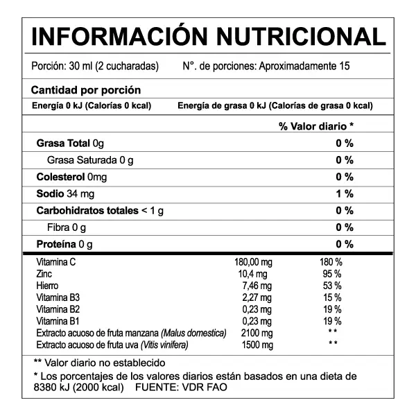 Fortalecimiento del Sistema Inmune: La Vitamina C y el Zinc son componentes clave que refuerzan las defensas de los pequeños, ayudándolos a estar más protegidos frente a resfriados y otras afecciones comunes, manteniéndolos activos y saludables.